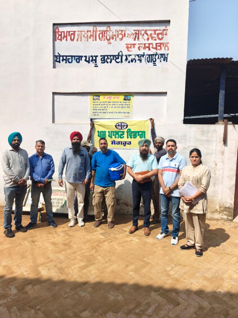 ਸੰਗਰੂਰ /ਜੋਗਿੰਦਰ /- ਜਿਲ੍ਹਾ ਸੰਗਰੂਰ ਵਿੱਚ ਪਸ਼ੂਧਨ ਨੂੰ ਲਾਗ ਦੀ ਖਤਰਨਾਕ ਬਿਮਾਰੀ ਮੂੰਹ ਖ਼ੁਰ ਤੋਂ ਬਚਾਉਣ ਲਈ ਸੱਤਵੇਂ ਰਾਉਂਡ ਦੀ ਟੀਕਾਕਰਨ ਮੁਹਿੰਮ ਦਾ ਅਗਾਜ ਗਊਸ਼ਾਲਾ ਬੇਸਹਾਰਾ ਪਸ਼ੂ ਭਲਾਈ ਸੰਸਥਾ ਉੱਭਾਵਾਲ ਰੋਡ ਸੰਗਰੂਰ ਤੋਂ ਕੀਤਾ ਗਿਆ ਇਸ ਸੰਬੰਧੀ ਜਾਣਕਾਰੀ ਸਾਂਝੀ ਕਰਦਿਆਂ ਡਾ ਸੁਖਵਿੰਦਰ ਸਿੰਘ ਡਿਪਟੀ ਡਾਇਰੈਕਟਰ ਪਸ਼ੂ ਪਾਲਣ ਸੰਗਰੂਰ ਨੇ ਦੱਸਿਆ ਕਿ ਸਰਦਾਰ ਗੁਰਮੀਤ ਸਿੰਘ ਖੁੱਡੀਆਂ ਕੈਬਿਨੇਟ ਮੰਤਰੀ ਪਸ਼ੂ ਪਾਲਣ ਅਤੇ ਸ਼੍ਰੀ ਰਾਹੁਲ ਭੰਡਾਰੀ ਜੀ ਪ੍ਰਮੁੱਖ ਸਕੱਤਰ ਪਸ਼ੂ ਪਾਲਣ ਜੀ ਦੀਆਂ ਹਦਾਇਤਾਂ ਮੁਤਾਬਿਕ ਇਸ ਸੱਤਵੇਂ ਰਾਉਂਡ ਤਹਿਤ ਮੂੰਹ ਖ਼ੁਰ ਬਿਮਾਰੀ ਤੋਂ ਪਸ਼ੂਧਨ ਨੂੰ ਬਚਾਉਣ ਲਈ ਜਿਲ੍ਹਾ ਭਰ ਵਿੱਚ 65 ਟੀਮਾਂ ਦਾ ਗਠਨ ਕੀਤਾ ਗਿਆ ਹੈ ਜੋ ਘਰ ਘਰ ਜਾ ਕਿ 505000 ਪਸ਼ੂਆਂ ਦੇ ਟੀਕਾਕਰਨ ਨੂੰ ਯਕੀਨੀ ਬਣਾਉਣਗੇ ਇਹ ਮੁਹਿੰਮ 15 ਅਕਤੂਬਰ ਤੋਂ ਸ਼ੁਰੂ ਹੋ ਕਿ 28 ਨਵੰਬਰ ਤੱਕ ਚੱਲੇਗੀ ਇਹ ਟੀਕਾਕਰਨ ਮੁਫ਼ਤ ਕੀਤਾ ਜਾਵੇਗਾ ਅਤੇ ਇਸਦੀ ਰਜਿਸਟਰੇਸ਼ਨ ਭਾਰਤ ਪਸ਼ੂਧਨ ਪੋਰਟਲ ਤੇ ਨਾਲੋ ਨਾਲ ਕੀਤੀ ਜਾਵੇਗੀ ਇਸ ਮੌਕੇ ਡਿਪਟੀ ਡਾਇਰੈਕਟਰ ਨੇ ਪਸ਼ੂ ਪਾਲਕਾਂ ਨੂੰ ਇਸ ਮੁਹਿੰਮ ਤਹਿਤ 100 ਪ੍ਰਤੀਸ਼ਤ ਟੀਕਾਕਰਨ ਕਰਵਾਉਣ ਦੀ ਅਪੀਲ ਕੀਤੀ ਸਮੂਹ ਪੰਚਾਇਤਾਂ,ਸਮਾਜ ਭਲਾਈ ਕਲੱਬਾਂ, ਸੰਸਥਾਵਾਂ ਨੂੰ ਵੀ ਇਸ ਕੰਮ ਵਿੱਚ ਭਰਪੂਰ ਸਹਿਯੋਗ ਦੀ ਅਪੀਲ ਕੀਤੀ ਗਈ ਤਾਂ ਕਿ ਅਸੀਂ ਆਪਣੇ ਪਸ਼ੂਧਨ ਨੂੰ ਲਾਗ ਦੀ ਖਤਰਨਾਕ ਬਿਮਾਰੀ ਤੋਂ ਬਚਾ ਸਕੀਏ ਅਤੇ ਇਸ ਖਿੱਤੇ ਨੂੰ ਐਫ ਐਮ ਡੀ ਮੁਕਤ ਜ਼ੋਨ ਬਣਾਉਣ ਵਿੱਚ ਅਪਣਾ ਯੋਗਦਾਨ ਪਾਈ