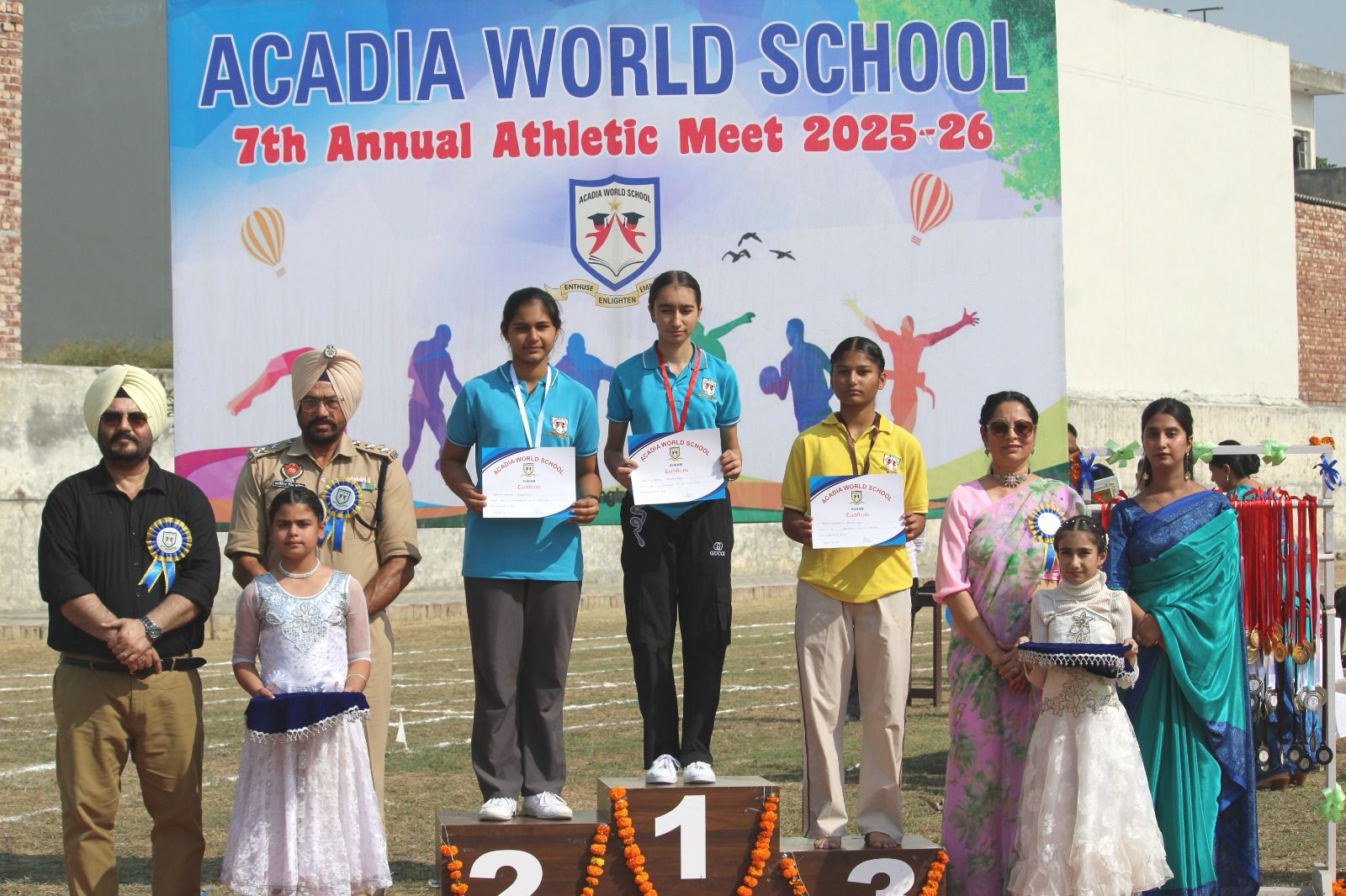 ਸੰਗਰੂਰ/ਸੁਨਾਮ/ਜੋਗਿੰਦਰ: ਇਲਾਕੇ ਦੀ ਪ੍ਰਸਿੱਧ ਵਿੱਦਿਅਕ ਸੰਸਥਾ ਅਕੇਡੀਆ ਵਰਲਡ ਸਕੂਲ, ਨੇੜੇ ਸੀਤਾਸਰ ਮੰਦਰ ਵਿਖੇ ਚੇਅਰਮੈਨ ਐਡਵੋਕੇਟ ਗਗਨਦੀਪ ਸਿੰਘ ਜੀ ਦੀ ਅਗਵਾਈ ਹੇਠ ਸੱਤਵੀਂ ਸਲਾਨਾ ਐਥਲੈਟਿਕ ਮੀਟ ਕਰਵਾਈ ਗਈ। ਜਿਸ ਵਿੱਚ ਮਾਨਯੋਗ ਸਰਦਾਰ ਹਰਵਿੰਦਰ ਸਿੰਘ ਖਹਿਰਾ ਡੀ.ਐੱਸ.ਪੀ ਸੁਨਾਮ ਜੀ ਨੇ ਮੁੱਖ ਮਹਿਮਾਨ ਦੇ ਤੌਰ ਤੇ ਸ਼ਮੂਲੀਅਤ ਕੀਤੀ। ਸਕੂਲ ਦੇ ਚੇਅਰਮੈਨ ਐਡਵੋਕੇਟ ਗਗਨਦੀਪ ਸਿੰਘ ਜੀ ਅਤੇ ਪ੍ਰਿੰਸੀਪਲ ਮੈਡਮ ਰਣਜੀਤ ਕੌਰ ਜੀ ਨਾਲ ਵਿਦਿਆਰਥੀ ਕੌਂਸਲ ਨੇ ਮਿਲ ਕੇ ਉਹਨਾਂ ਦਾ ਨਿੱਘਾ ਸਵਾਗਤ ਕੀਤਾ। ਮੁੱਖ ਮਹਿਮਾਨ ਵੱਲੋਂ ਝੰਡਾ ਝੁਲਾ ਕੇ ਐਥਲੈਟਿਕ ਮੀਟ ਦਾ ਆਰੰਭ ਕੀਤਾ ਗਿਆ ਅਤੇ ਮਾਰਚ ਪਾਸਟ ਤੋਂ ਸਲਾਮੀ ਲਈ। ਇਹ ਇਵੈਂਟ ਖੇਡਾਂ ਦੀ ਸੱਚੀ ਆਤਮਕਥਾ, ਟੀਮ ਵਰਕ ਅਤੇ ਵਿਦਿਆਰਥੀਆਂ ਦੀ ਸ਼ਾਨਦਾਰ ਐਥਲੈਟਿਕ ਪ੍ਰਤਿਭਾ ਦਾ ਜਸ਼ਨ ਸੀ। ਜਿਸ ਦੀ ਸ਼ੁਰੂਆਤ ਚਾਰ ਹਾਊਸਾਂ ਰੇਡਰਜ਼, ਟਰੂਪਰਜ਼ , ਵਾਰੀਅਰਜ਼ ਅਤੇ ਗਲੇਡੀਏਟਰ ਦੇ ਵਿਦਿਆਰਥੀਆਂ ਦੁਆਰਾ ਮਾਰਚ ਪਾਸਟ ਨਾਲ ਹੋਈ।